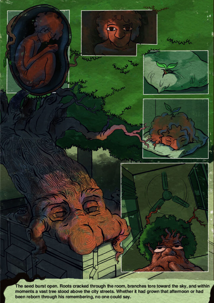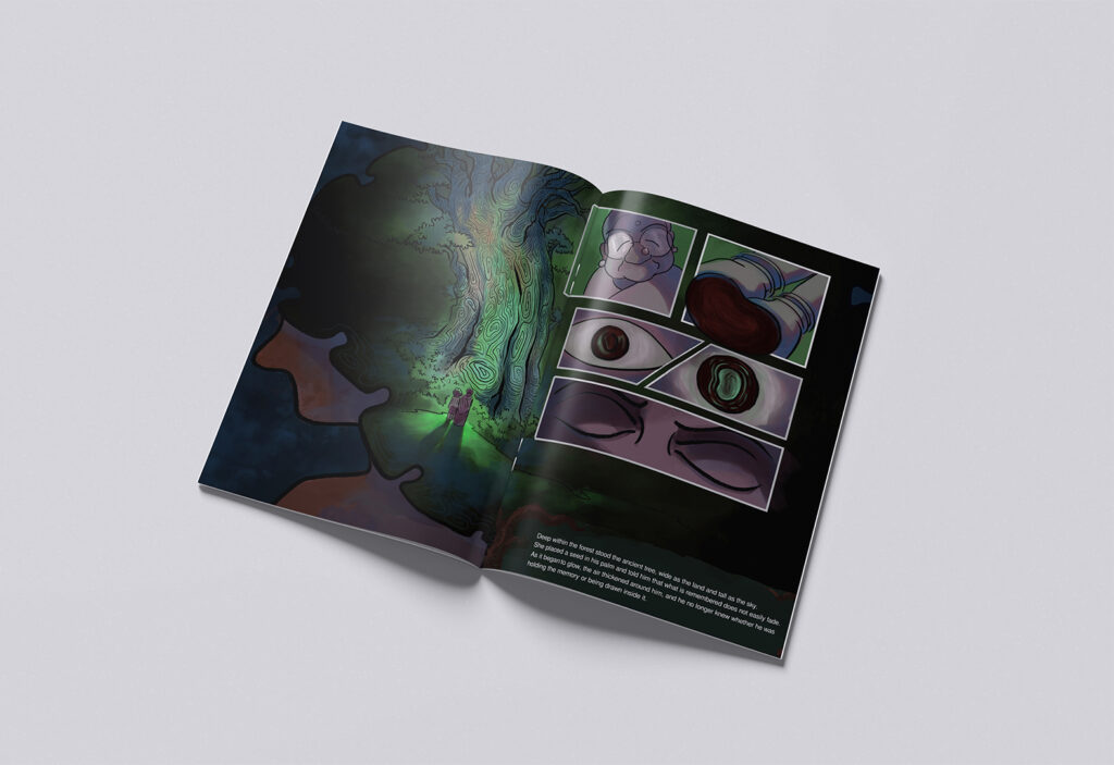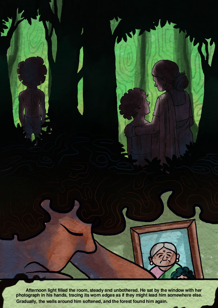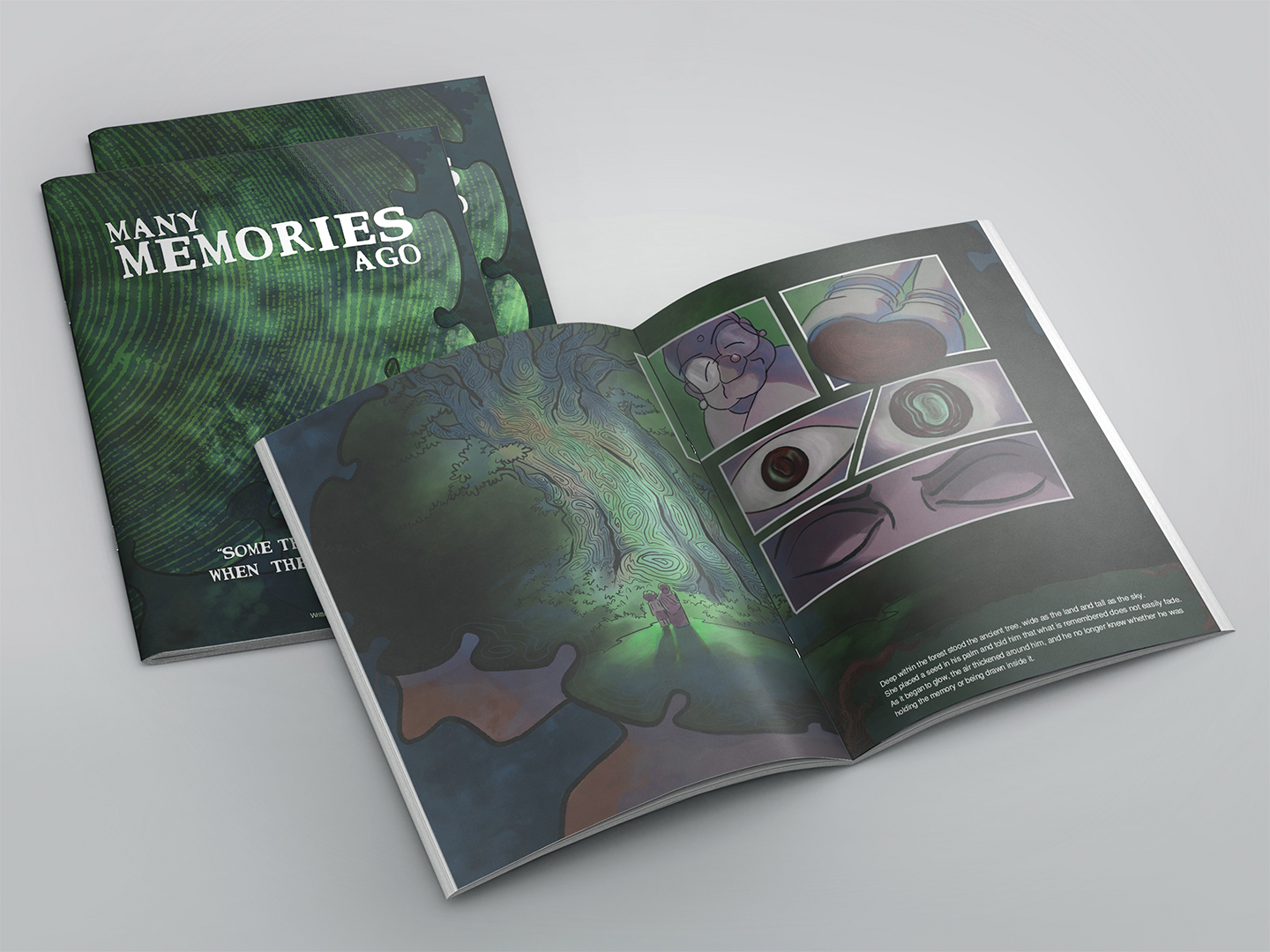 Many Memories Ago is an illustrated graphic story inspired by the concept of sacred forests known as Devrai. These forests continue to survive because they are remembered, respected, and protected through cultural and personal memories. The project reflects on how stories, beliefs, and experiences connected to trees allow them to remain part of our lives across generations. Through visual storytelling and illustrations, the narrative suggests that memory can become a powerful way of preserving nature.