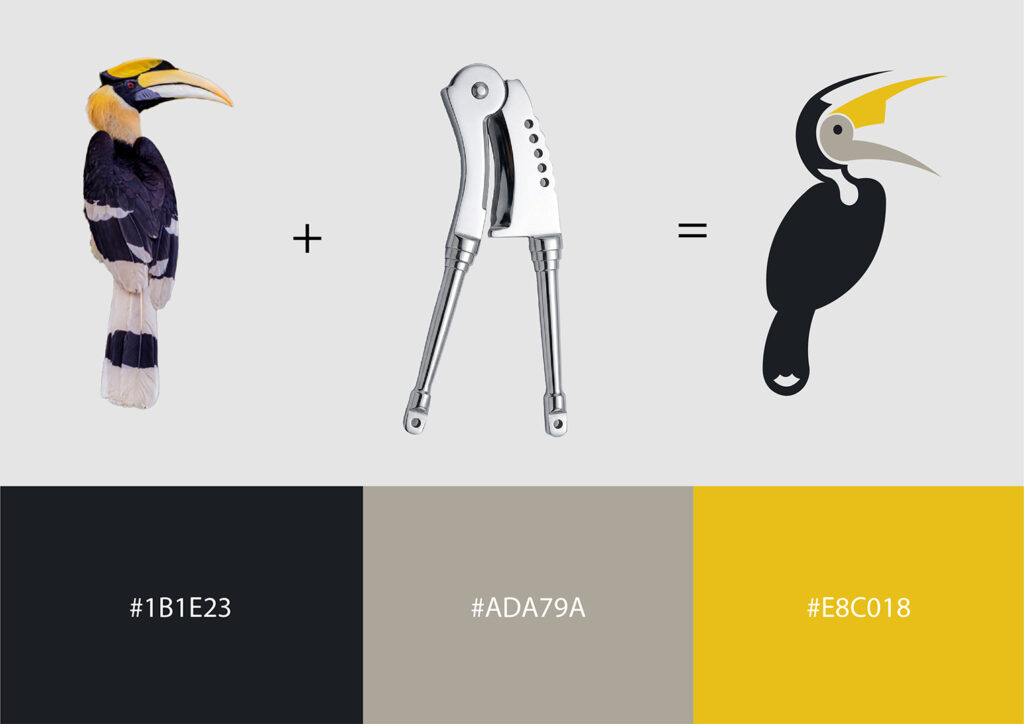 as the dominant tone symbolizing durability and an industrial aesthetic. Yellow accents are inspired by the hornbill and traditional brass nutcrackers, while light grey adds balance and enhances the premium feel.