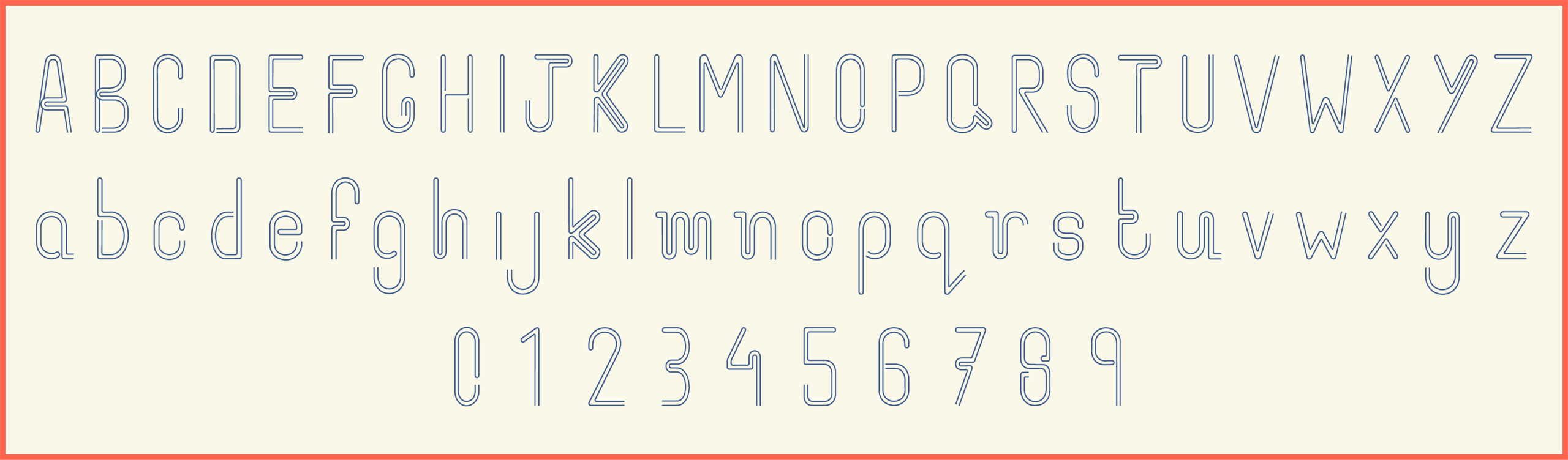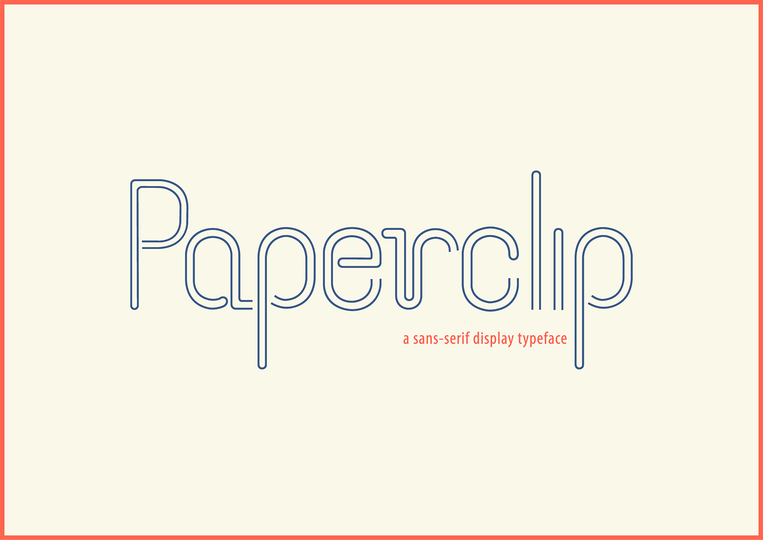 Paperclip is a sans-serif display typeface inspired by the form and flexibility of a paperclip. The letterforms are constructed using a single continuous stroke and smooth curves and bends replicating the simple wire structure of a paperclip. The design emphasizes simplicity, continuity and minimal form while maintaining clarity and legibility. It is intended for display use in headings, titles, and graphic compositions.