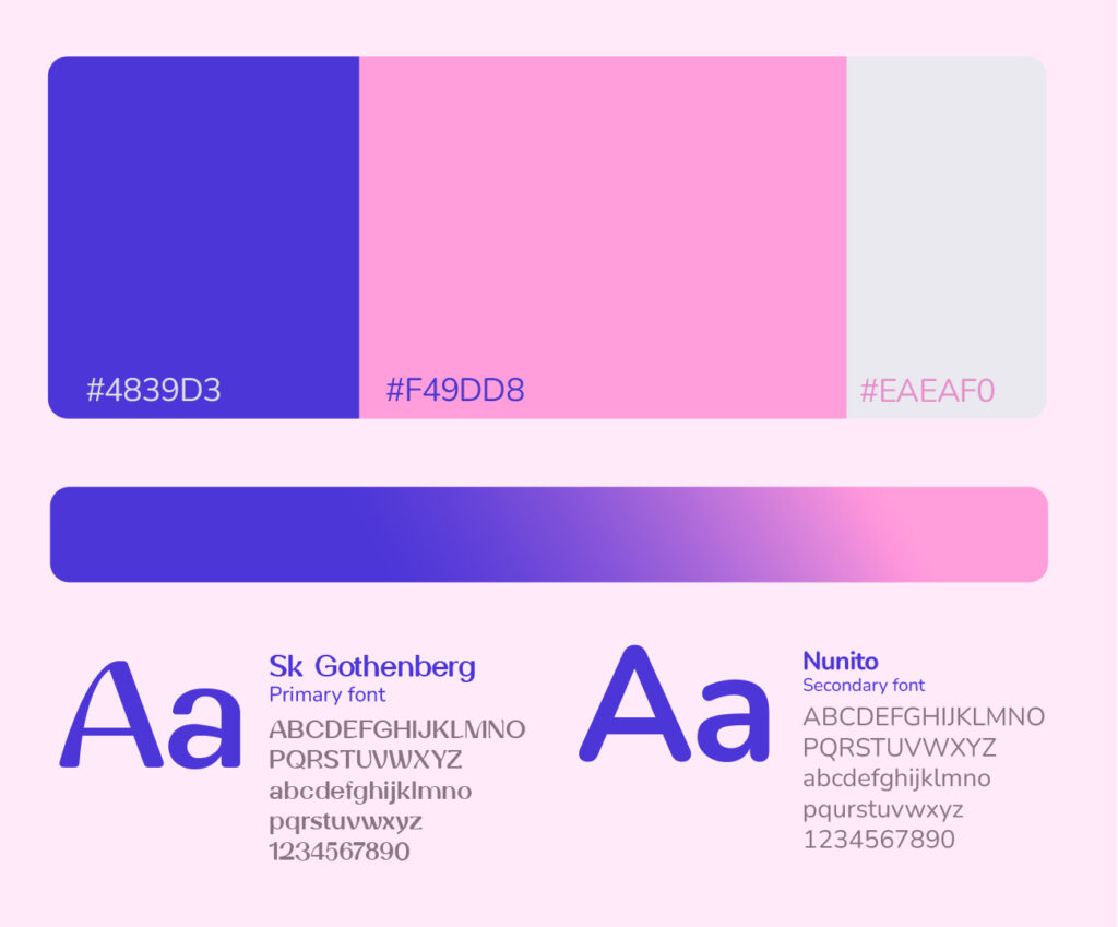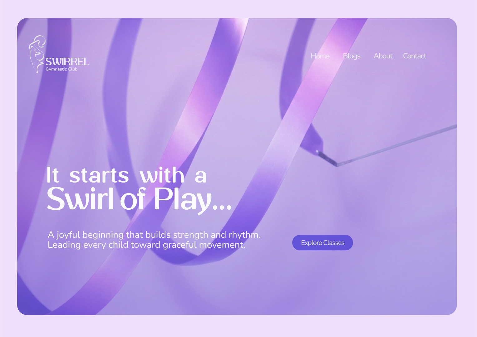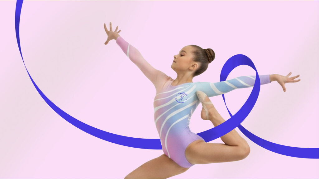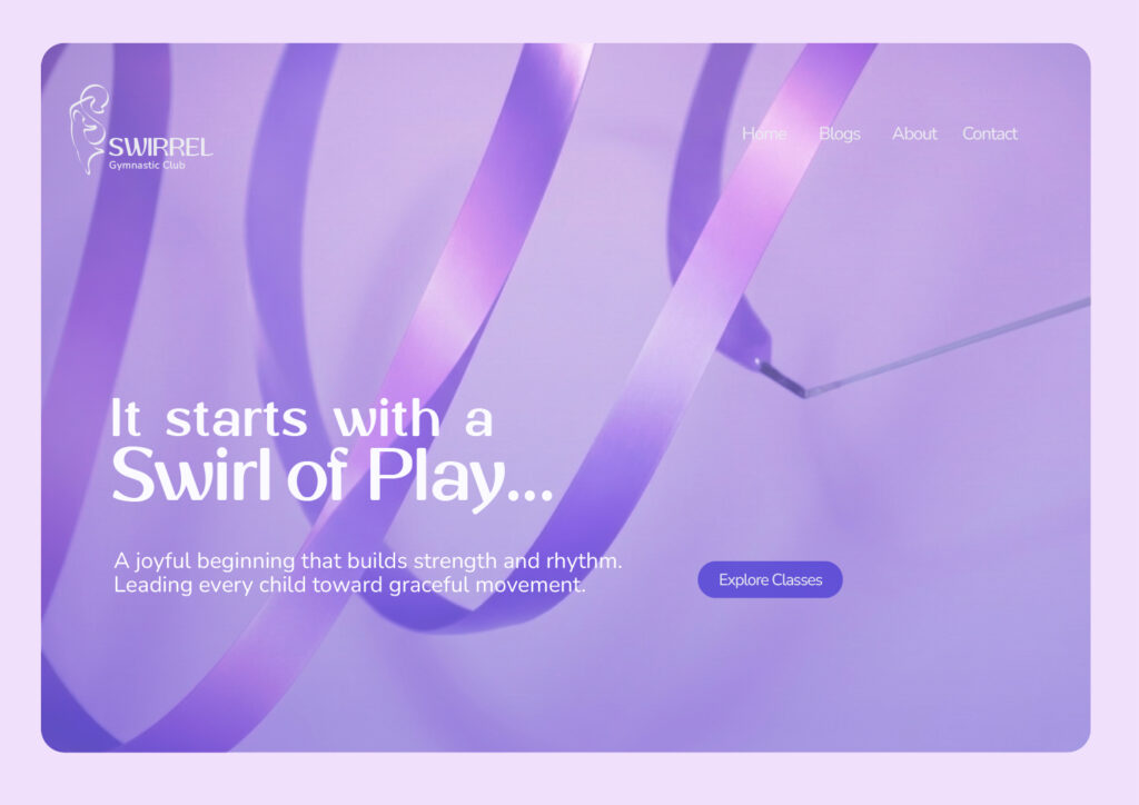 Swirrel Gymnastic Club is a rhythmic gymnastics club where children are trained in movement, balance, and co-ordination, using props like ribbons to develop flexibility, control, and rhythm.The brand is inspired by a squirrel’s playful agility and quick, flowing movements. The name Swirrel combines ‘swirl’ and ‘squirrel’, reflecting this rhythm, while the ribbon expresses it through smooth, continuous motion, where every movement begins to flow.Purple-blue and pink reflect energy and grace. Rounded typography, with thick and thin strokes, follows a flowing movement inspired by the ribbon.