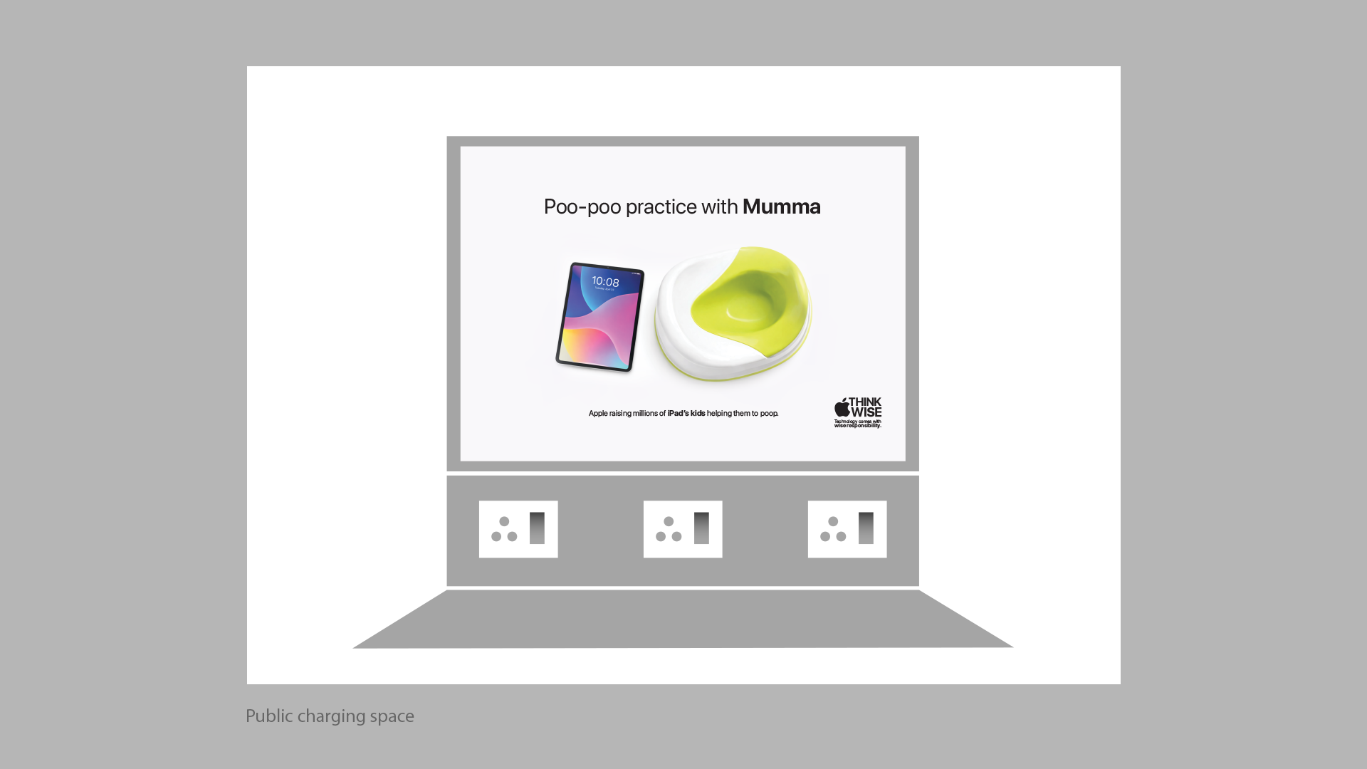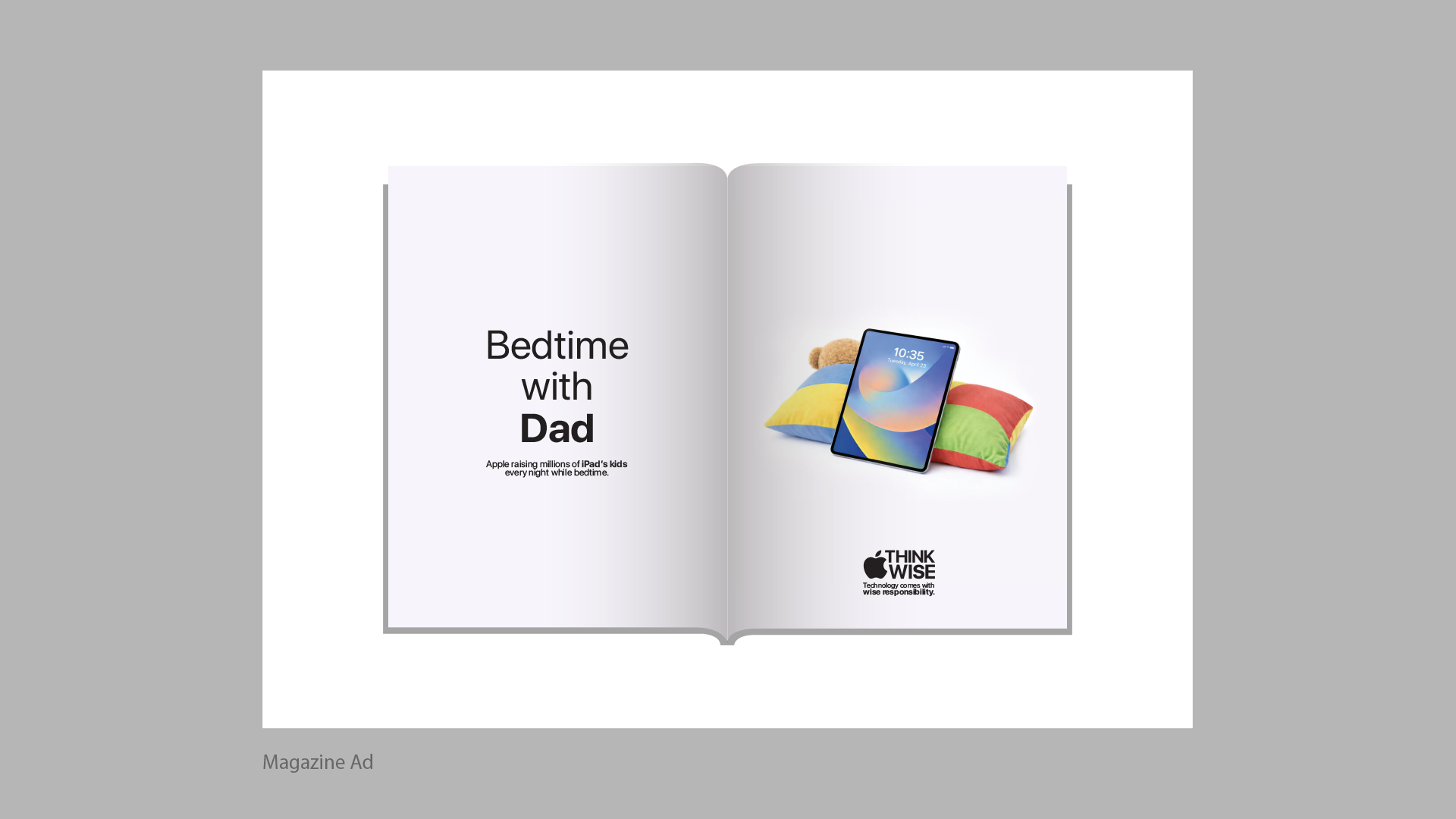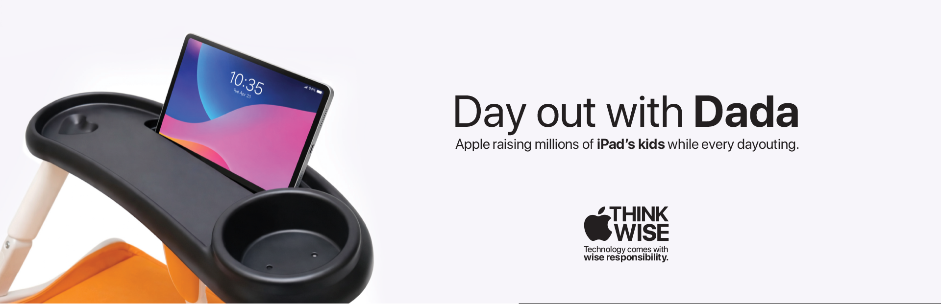 “Think Wise is an expandable campaign in which Apple, as a tech brand, shares knowledge about the wise use of technology. It uses reality-questioning lines like ‘Breakfast time with mom?’ supported by minimal visuals on a white background. These visuals depict situations—such as feeding, sleeping, day outings, and even potty time—where parents are absent, subtly personifying the iPad as a parent.”